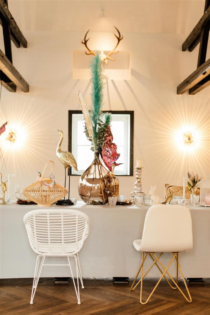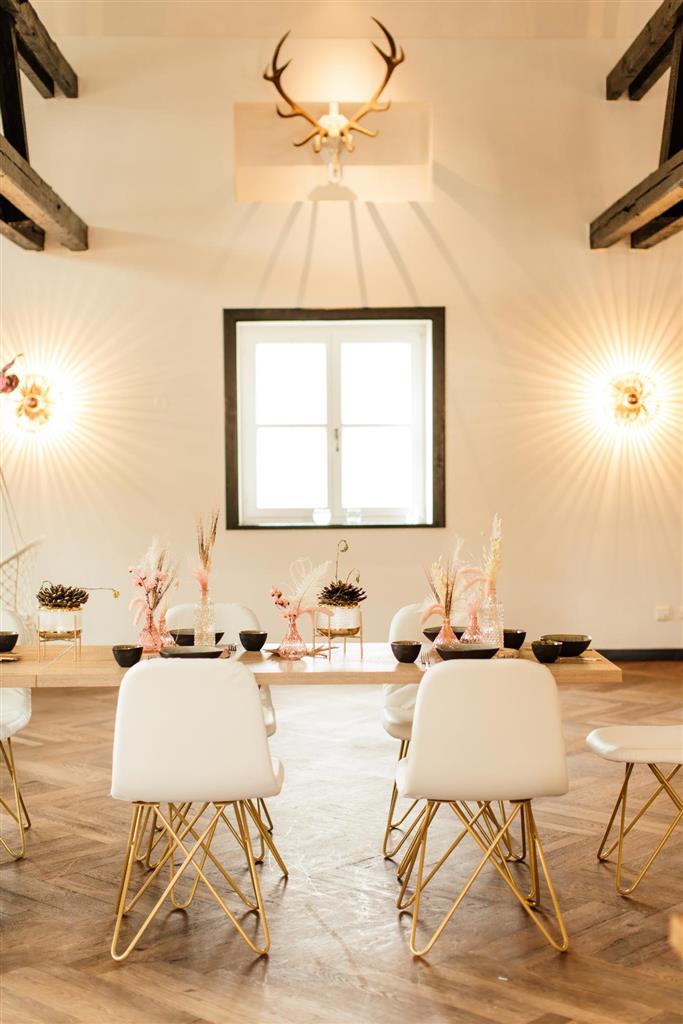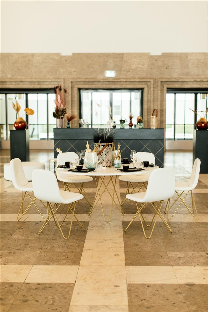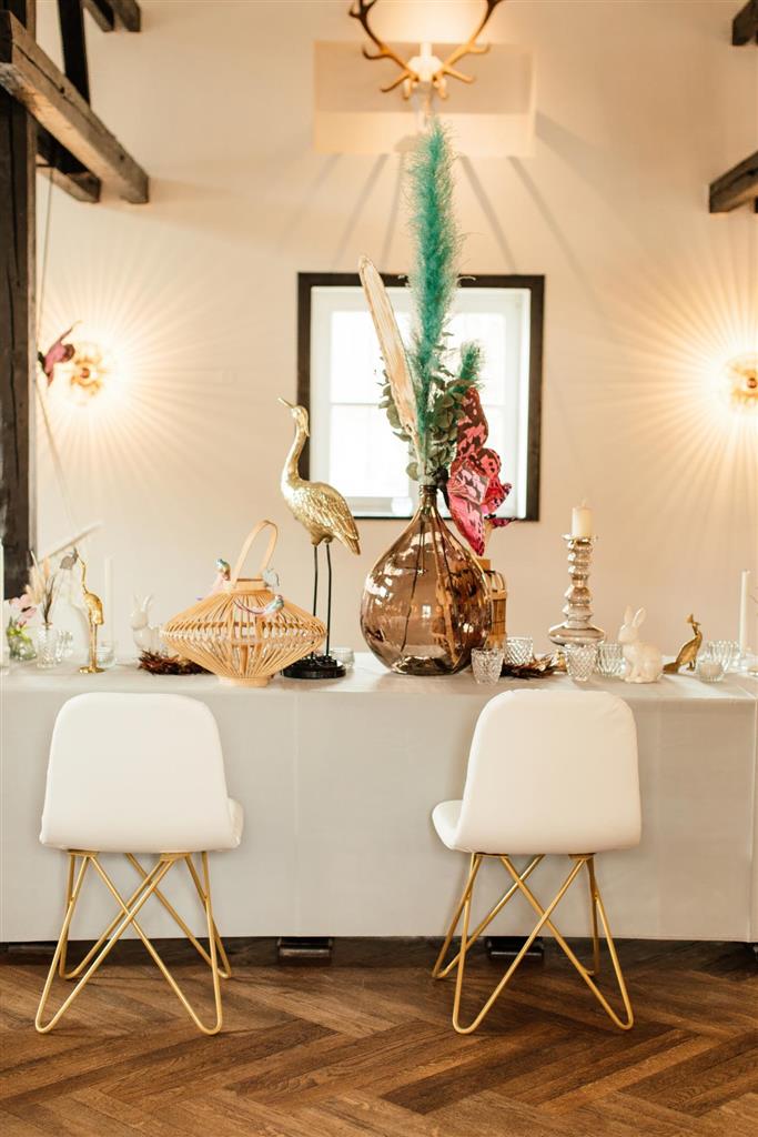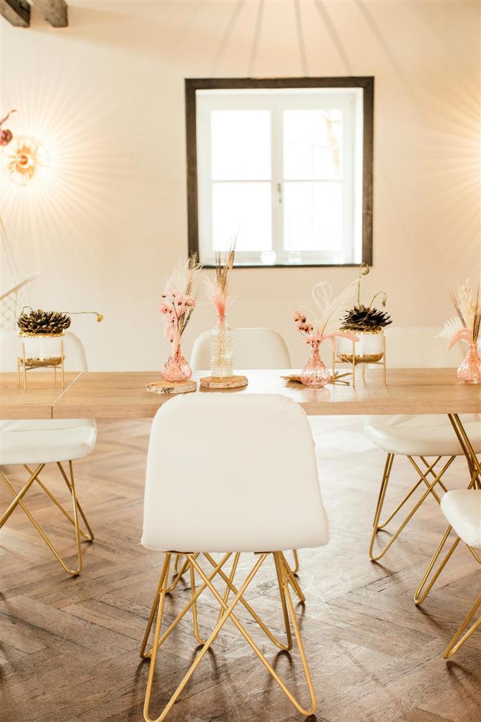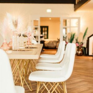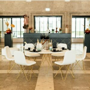Stuhl Chloe GESTELL GOLD Polster weiß PU-Leder